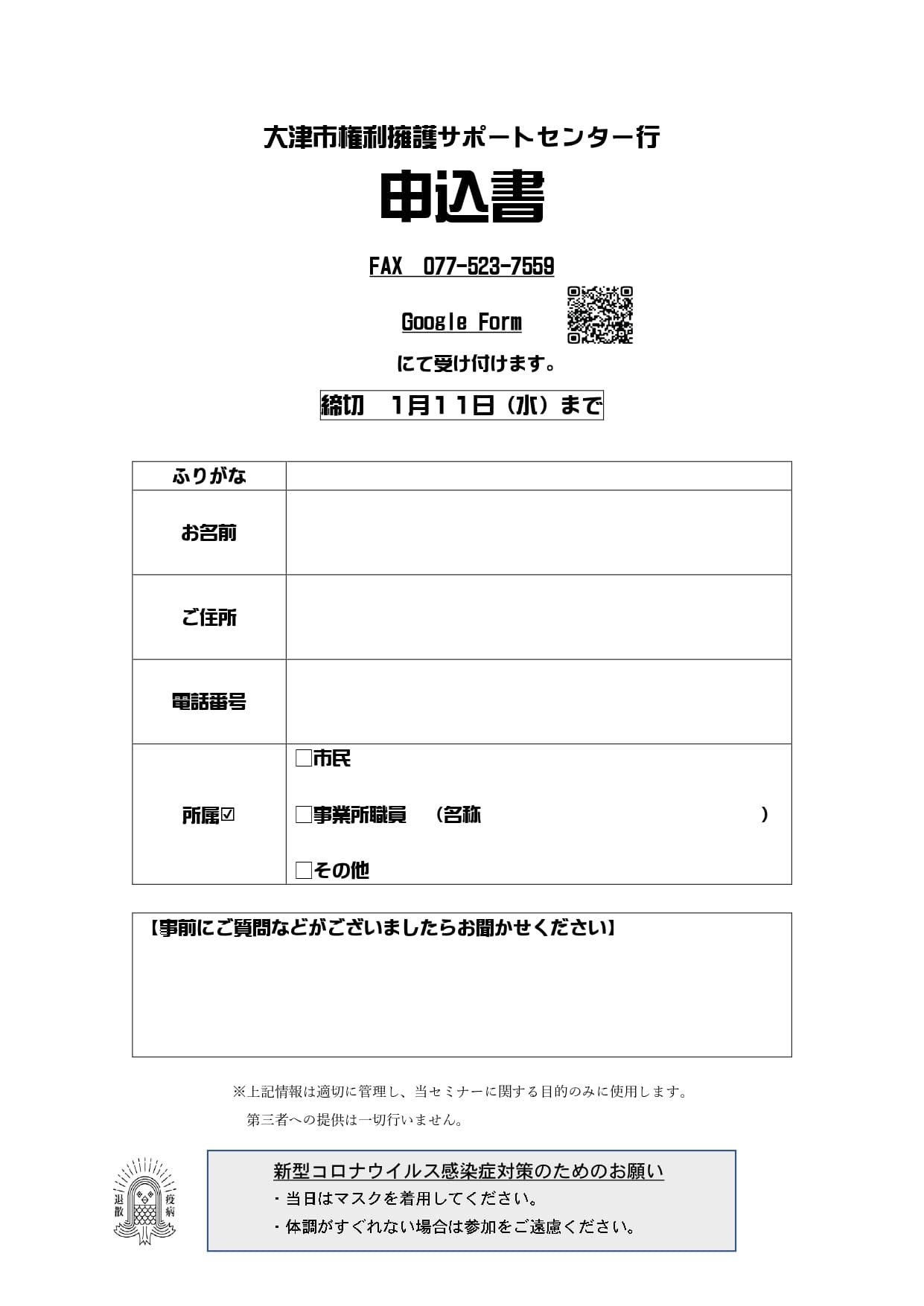 お知らせ1月18日(水)13:30~ 「知っておこう! 権利擁護の制度と事業」開催のお知らせ